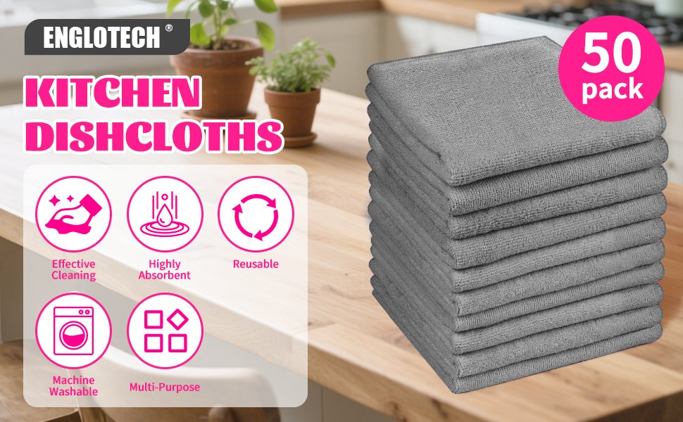 ENGLOTECH Microfiber Cleaning Cloth, 50 Pack Large Size Cleaning Rags, Cleaning Towels Free from Streaks/Lint/Scratch for Cars 37cm X 37cm