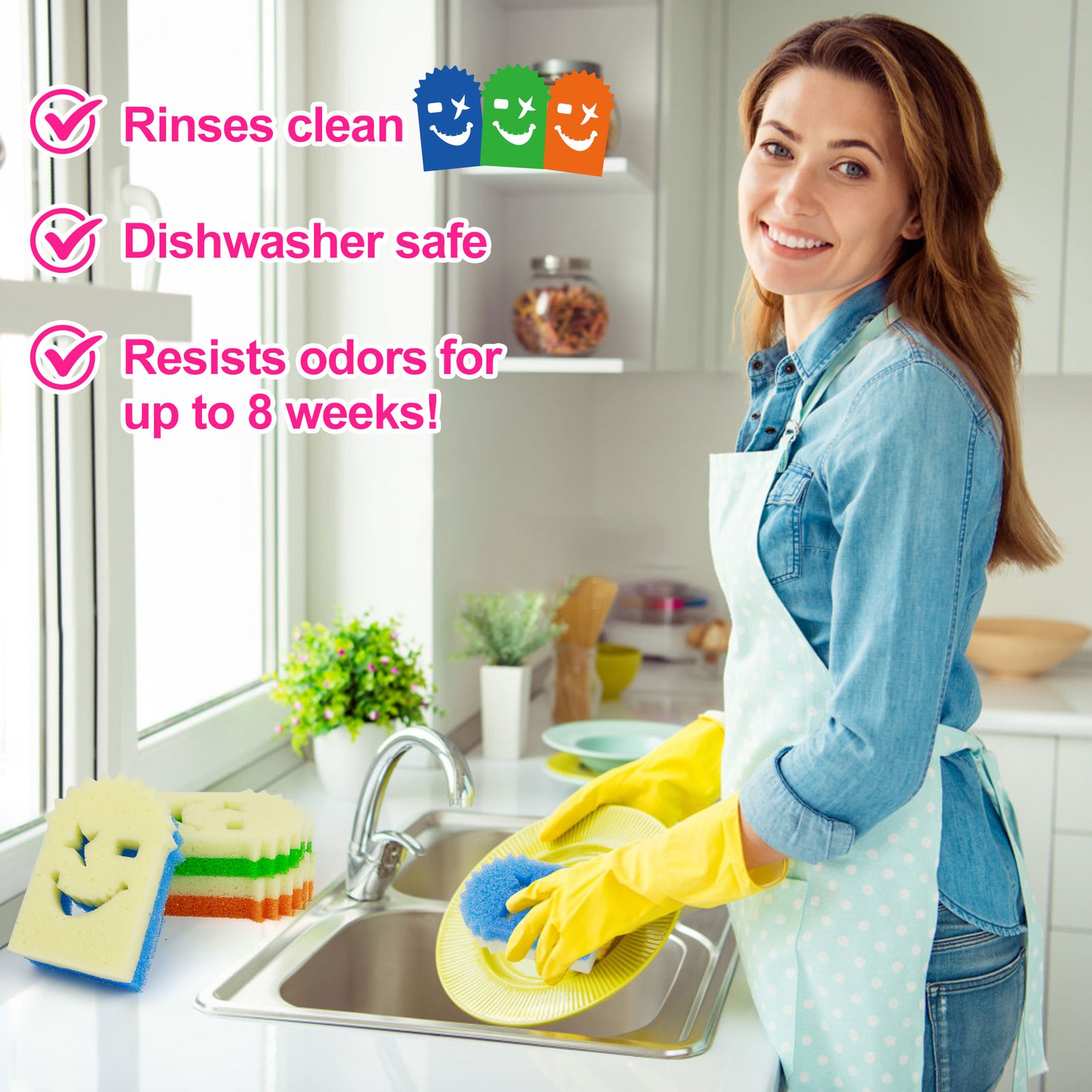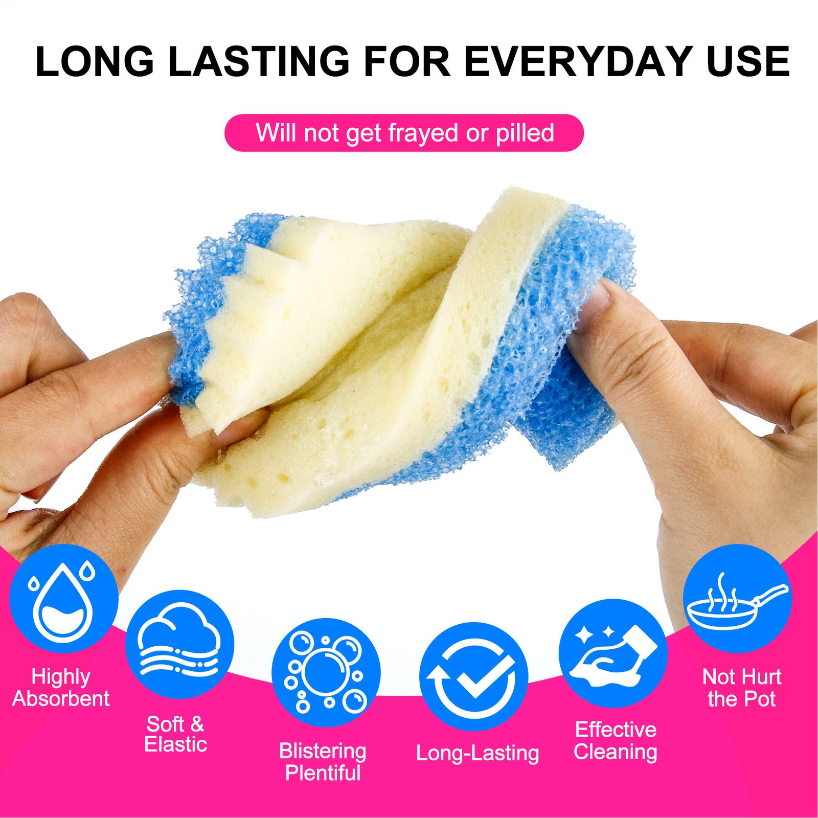 - 2.Enjoy multi-surface versatility with these sponges,including porcelain, glass, stainless steel, tile, cast iron, non-stick coatings, leather and more,ideal for scrubbing dishes, cleaning grills, and polishing mirrors. Leaving every corner dirt-free and clean